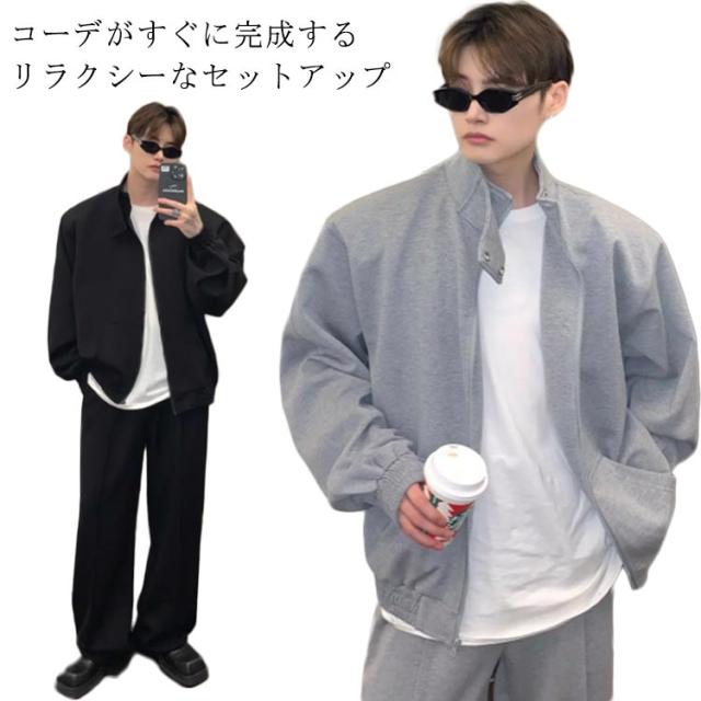 秋 メンズ テーラードジャケット セットアップ ワイドパンツ きれいめ 春服 春 スラックスパンツ ジャージ ストレッチ ストレッチ イージーパンツ 秋服 ゴムウエスト セットアップ カジュアル 20代 30代 40代 メンズファッション