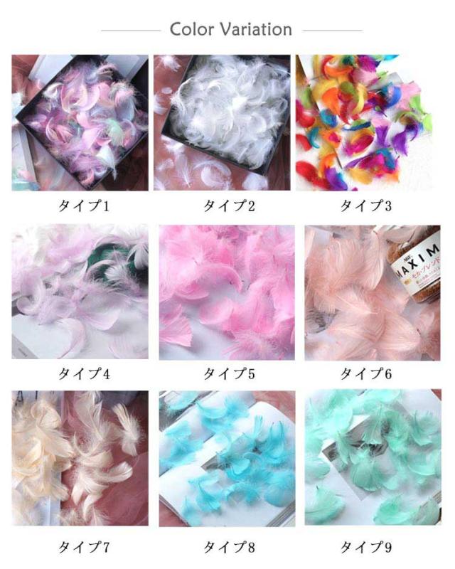 | 鮮やかな発色の羽根です。 たっぷり使える200枚セットで、舞台の演出、フォトアイテムなど幅広くご利用いただけます。 綺麗で優しい色合いで華やかな印象を与えます。 注意:羽毛のみで、撮影道具は含まれていません。 素材は天然の羽だから、羽には大小さまざまなものがありますが、たまには傷がついているものもあります。 | |