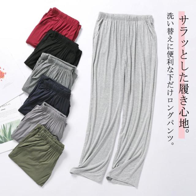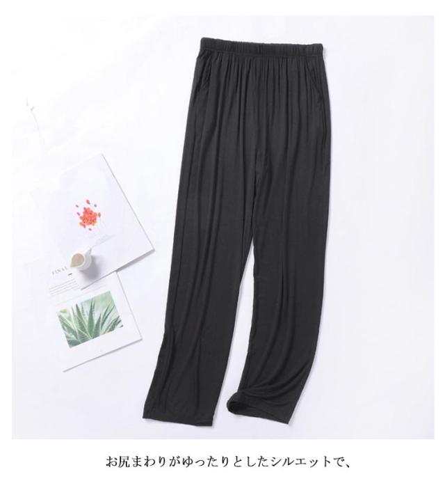 | サラッとした履き心地。 洗い替えに便利な下だけロングパンツ。 お尻まわりがゆったりとしたシルエットで、 部屋着やパジャマとしてはもちろん、 ちょっとしたお出かけにも使えます。 | |