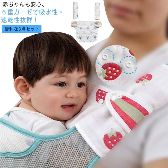 抱っこ紐 よだれカバー 3点セット 抱っこ紐用 抱っこ紐カバー よだれパッド 綿 6重ガーゼ 胸当て ベルトカバー 抱っこひも リバーシブル チャイルドシート 胸カバー&ベルトの3点セット シンプル おしゃれ 全20柄