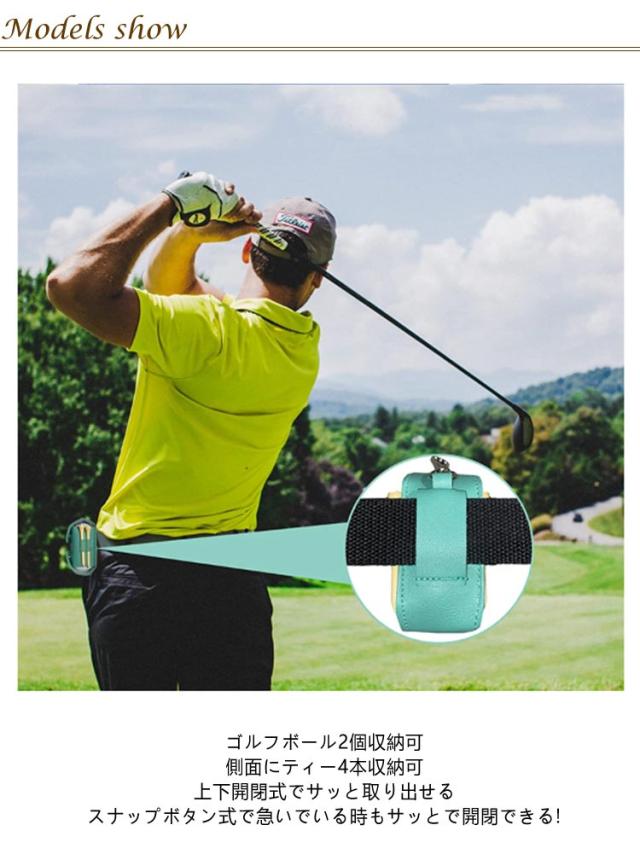 | コンパクトで使いやすい 2個入れ用ゴルフボールケース 両開きタイプでサッと取り出せる! <details> ・ゴルフボール2個収納可 ・側面にティー4本収納可 ・上下開閉式でサッと取り出せる ・スナップボタン式で急いでいる時もサッとで開閉できる! <装着方法は2way> 1.ベルトにしっかりと固定 2.手軽に装着できるカラビナ付 <お勧めポイント> ●ベルトループタイプでしっかり固定できます。プレー中の落下の心配がありません。 ●バイカラーで品のあるデザインなので女性・男性問わずお使いいただけます。 ●ギフトには勿論、パートナーと色違いで持つのもお勧めです。 ●合成皮革なので雨や汚れに強くお手入れも簡単です。 ●ゴルフポール×2個、ティー×3~4本、グリーンフォークなど散らばりやすいアイテムを1つに収納! ●サッと取り出せる設計:上下開閉式で、下からボールの取り出しが可能。下のボールを出しても、上のボールは落ちない◎ | |