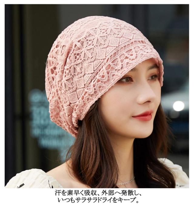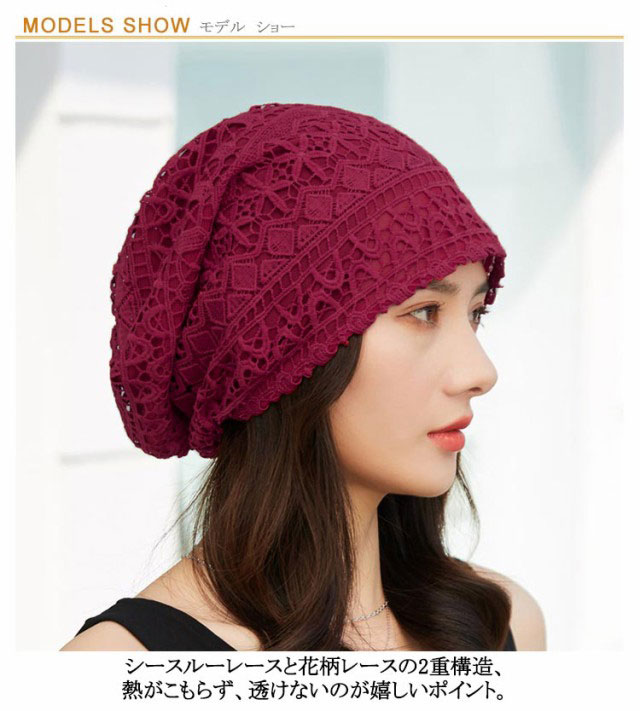 | 4type/18colors! 軽くて薄い、蒸れないレースワッチ。 シースルーレースと花柄レースの2重構造、熱がこもらず、透けないのが嬉しいポイント。 汗を素早く吸収、外部へ発散し、いつもサラサラドライをキープ。 ゆったりかぶれるサイズ感で、外出はもちろん、室内用としても一年を通して使えます。 | |