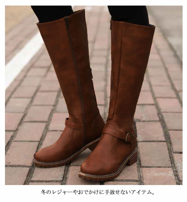 | 歩きやすい3cmヒールは秋冬の旅行やコスプレにもおすすめです♪履き口が調整できるロングブーツ。 バックファスナーで筒周りを調節できるから、ふくらはぎが太い方も履けるロングブーツ。 長めの筒丈はひざ下全体をカバーしてくれるので足元も温かい。冬のレジャーやおでかけに手放せないアイテム。 ぺたんこよりも歩きやすいちょこっとヒール、スタイルアップしてくれ、長時間履いていても疲れない。 足首が細く見えるベルト設計、履くだけで細見え効果◎ | |