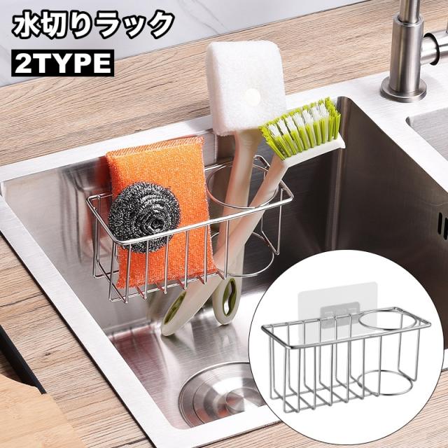 水切りラック 水切りかご シンクラック シンクトレー キッチンラック 貼り付け 粘着テープ スポンジ置き たわし置き 台所用品