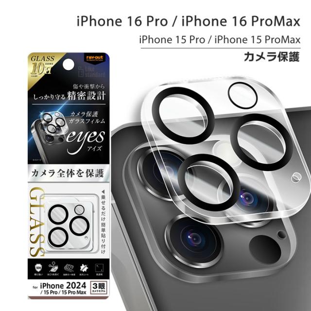 iPhone16pro iPhone16proMax iPhone15Pro iPhone15ProMax eyes ガラスフィルム カメラ保護 一体型 硬度10H クリア メール便送料無料