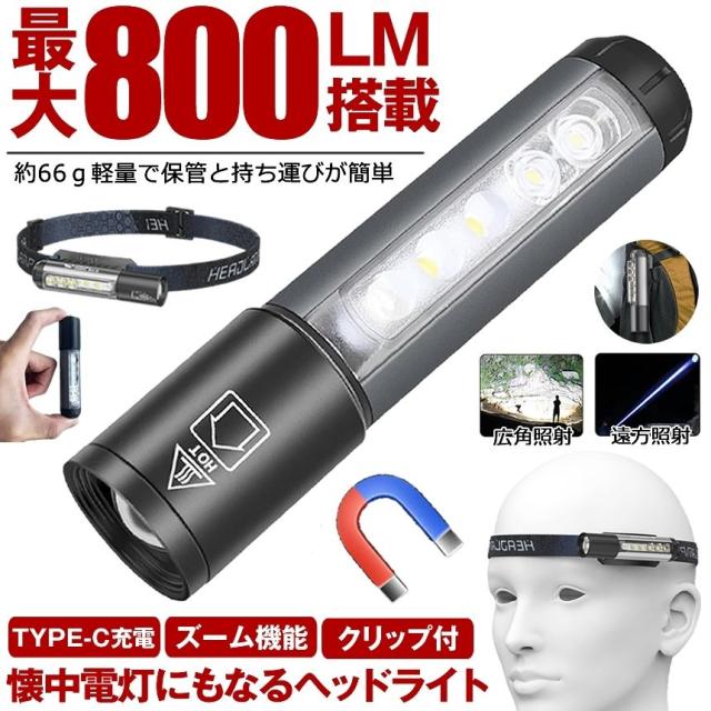 ヘッドライト 充電式 懐中電灯 ハンディライト ヘッドランプ led ライト 最強 ハンディ高輝度 クリップライト TYPE-C ハンドライト フラッシュライト 登山 釣り 作業 マグネット 磁石 小型 軽量 キャップ ウォーキング アウトドア キャンプ 夜間 防犯
