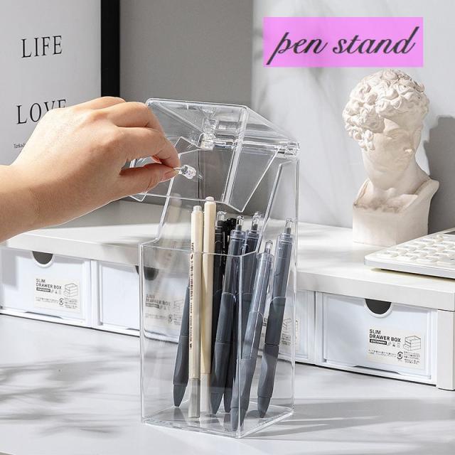 ペンスタンド ペンホルダー ペン立て 小物入れ 卓上収納 収納ボックス 蓋付き クリア 透明 シンプル 大容量 文房具入れ 多機