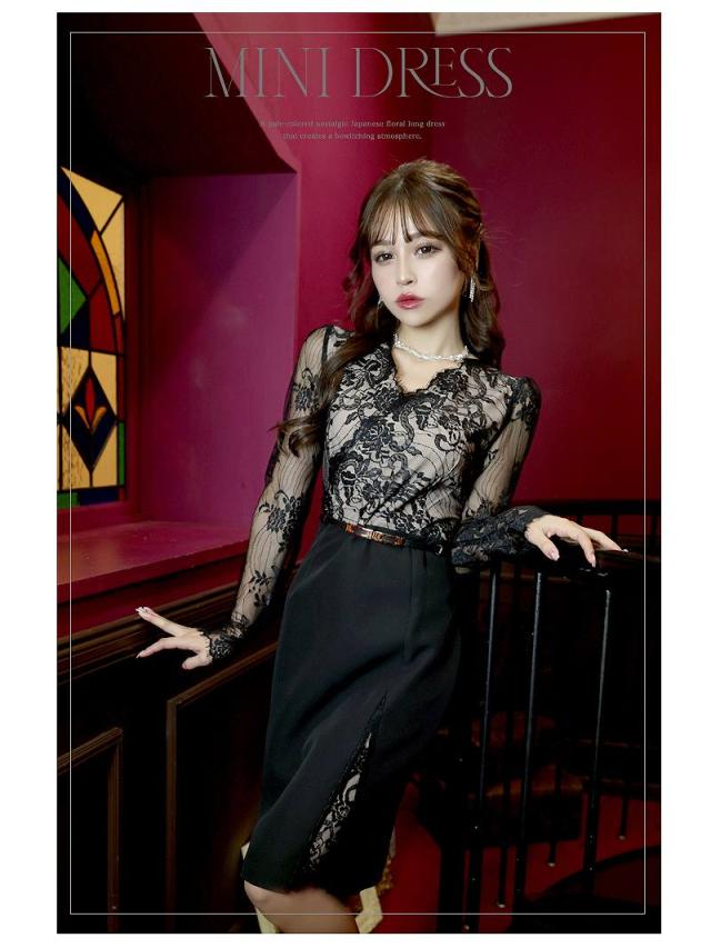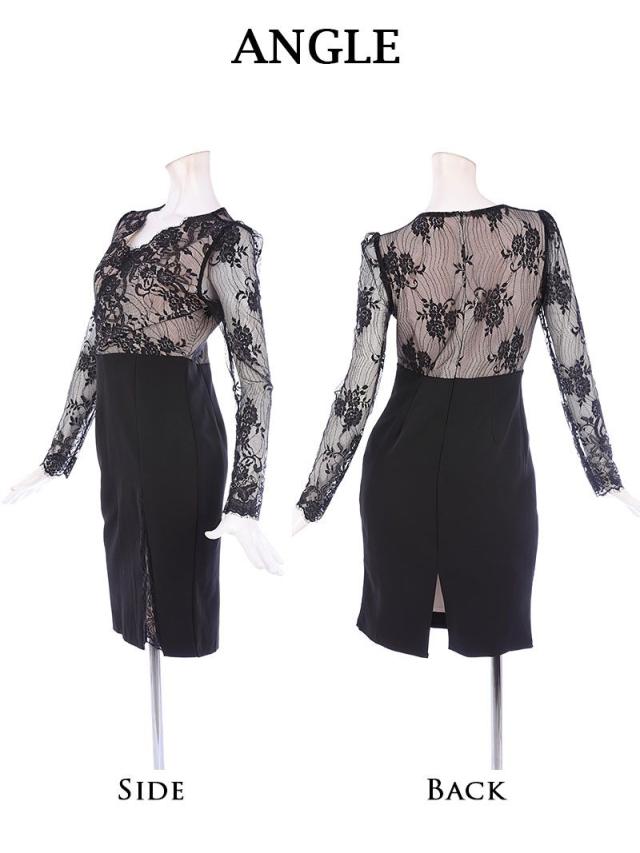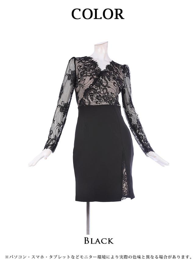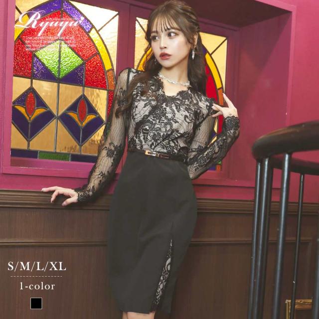 予約販売 ミニドレス Ryuyu レース レース袖 長袖 フォーマル ヌーディー キャバ ドレス キャバドレス ミニドレス ミ