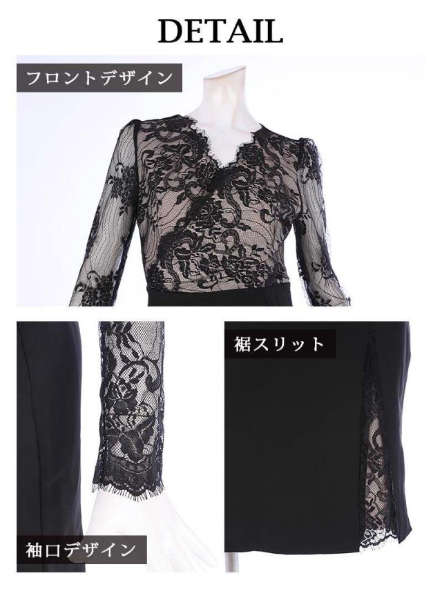 ☆裾にはレーススリットをあしらい細部までこだわりを尽くしたS〜XLサイズまで揃っている膝丈ドレス。