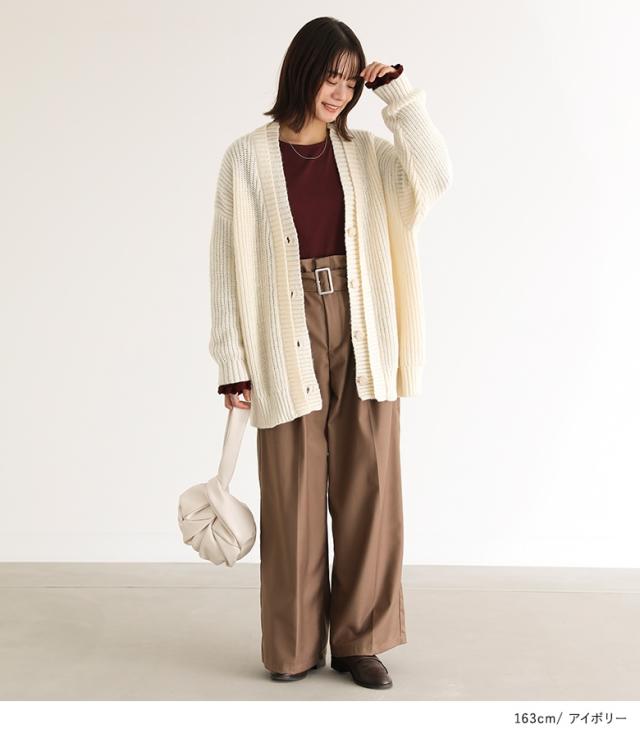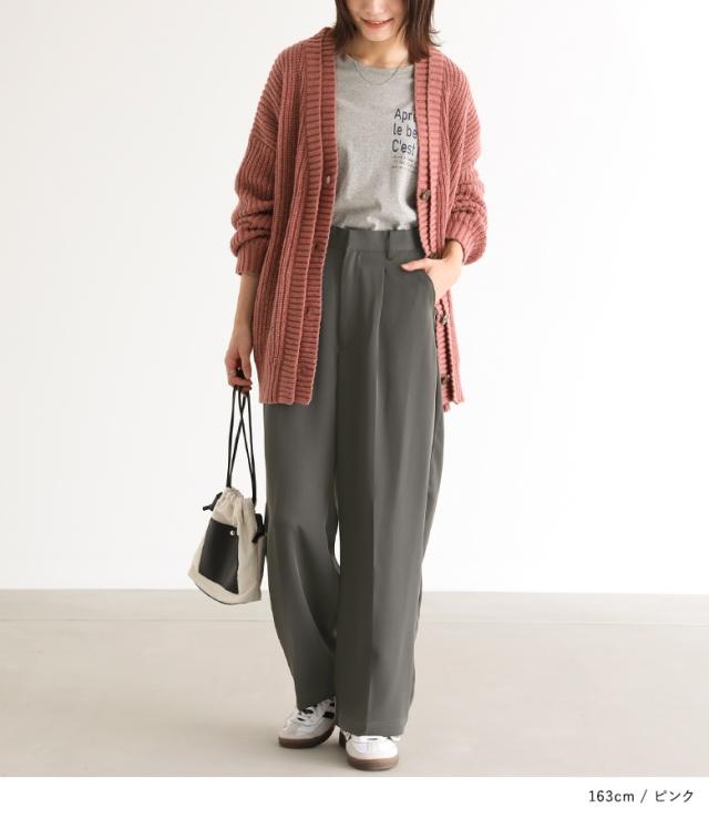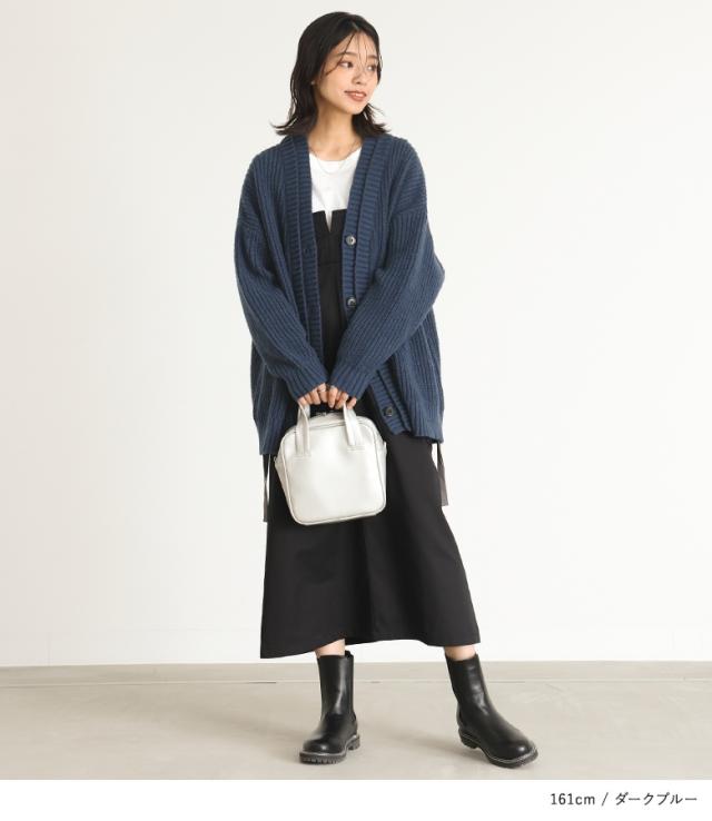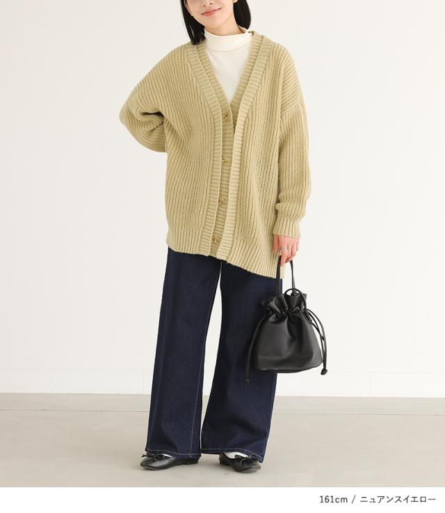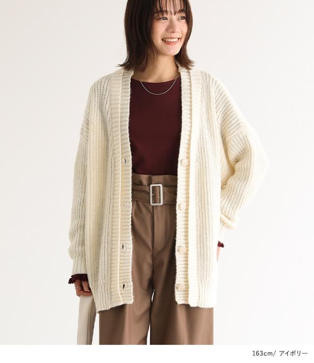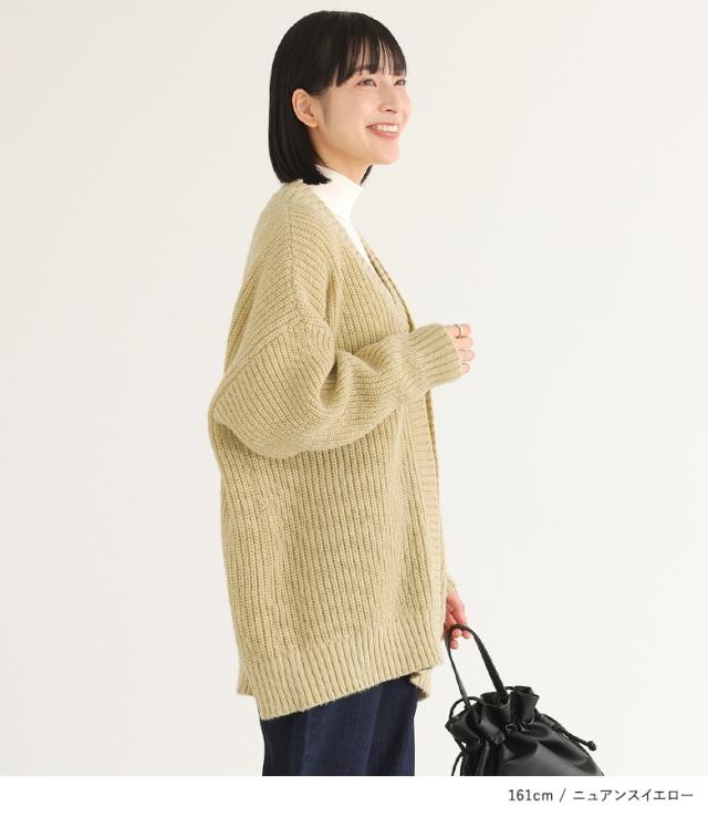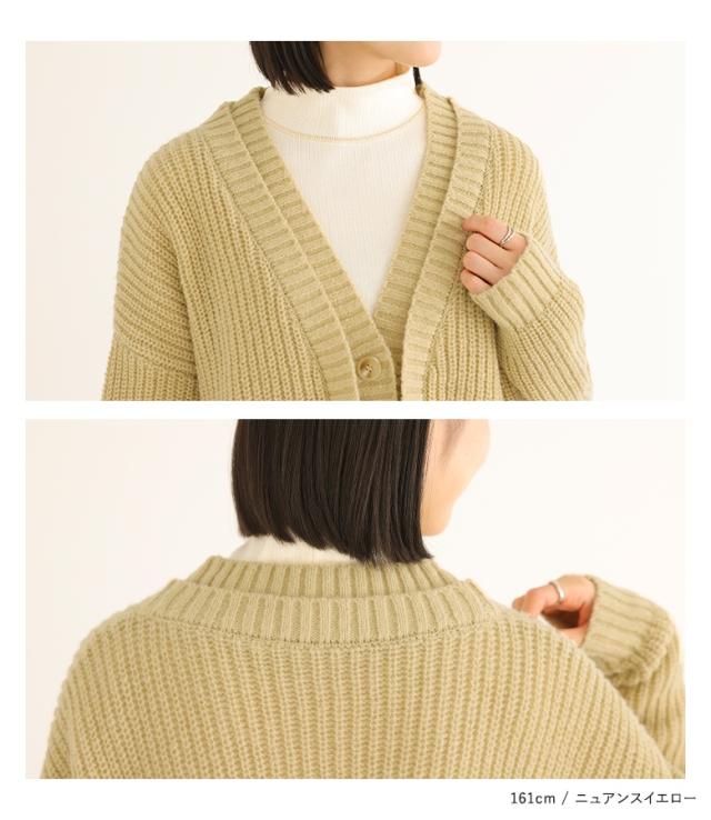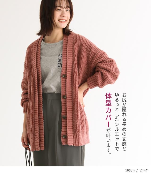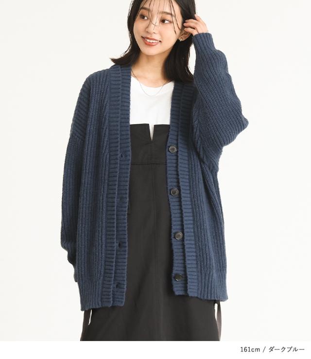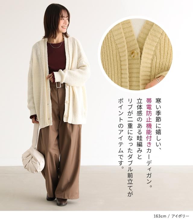 23日最大1200円クーポン 『ダブルリブ畦編みカーディガン』【メール便不可】【40】[ニット カーディガン 長袖 レディース トップス ロングカーディガン セーター Vネック 帯電防止機能 レイヤード 重ね着 ローゲージ]
