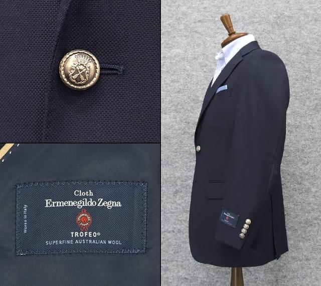 秋冬物ジャケット [Ermenegildo Zegna]ゼニア生地 TROFEO使用 紺ブレ ベーシック2釦 紺系/無地 EZJ-5212-88