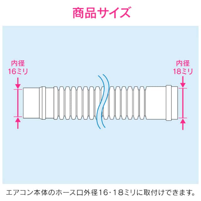 ◆エアコンの本体ホース口外径16・18ミリに取付けできます。◆約50cm毎に接続口を設けており、ホース接続部内径16・18ミリに取付けできます。