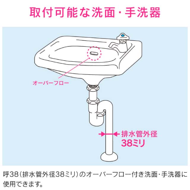 ◆呼38(排水管外径38ミリ)の排水管が付いている洗面・手洗器の排水口に使用できます。◆二段式なのでオーバーフローから流失した小物やゴミもキャッチしてくれます。