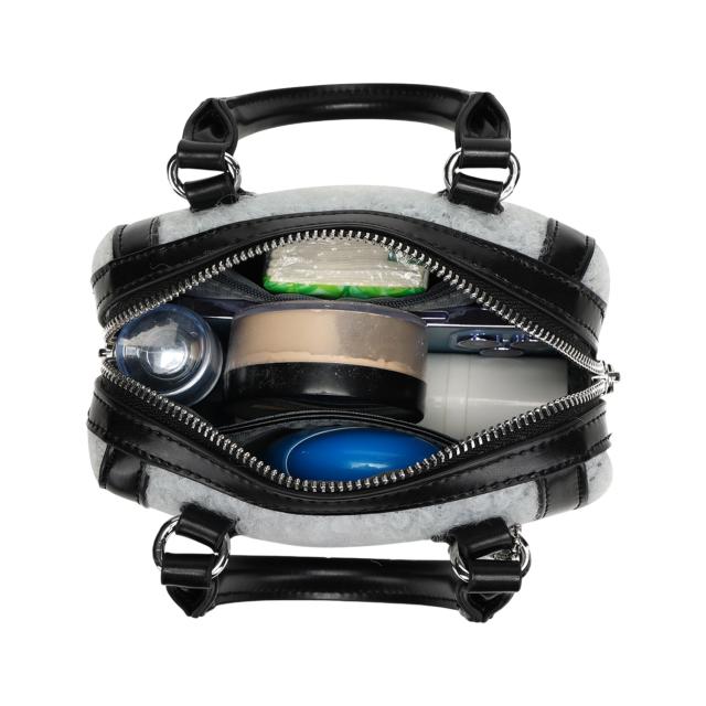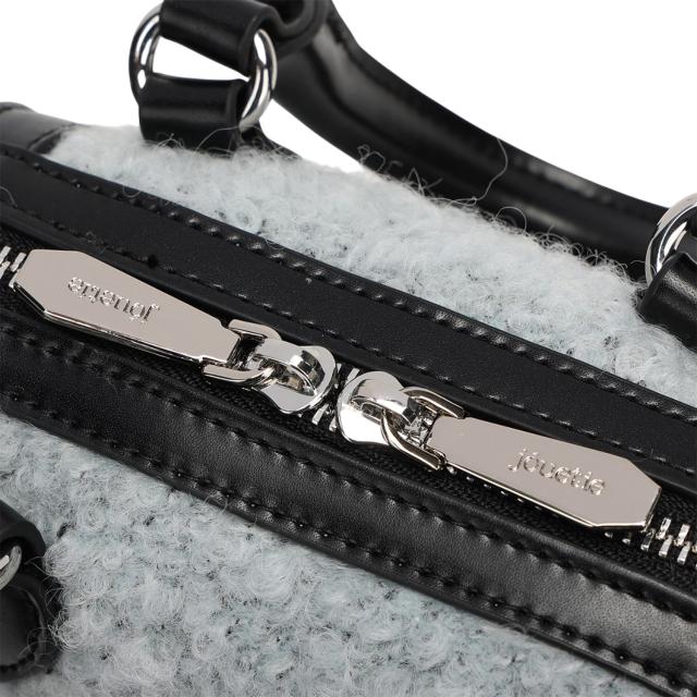 丸みのあるコロンと小さめなサイズ感が秋冬のトレンド素材を使用のミニボストンバッグに、モコモコとした生地が一気に季節感を演出してくれて中央部分に大きなエンブレム刺繍(JJ刺繍)がデザインされているところがポイントです。付属のボールチェーンドッグタグjouetieならではの個性を演出します。