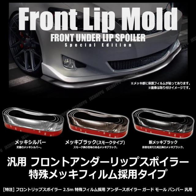 フロントリップスポイラー メッキブラック 2.5m 特殊フィルム採用 アンダースポイラー ガード モール バンパー 汎用