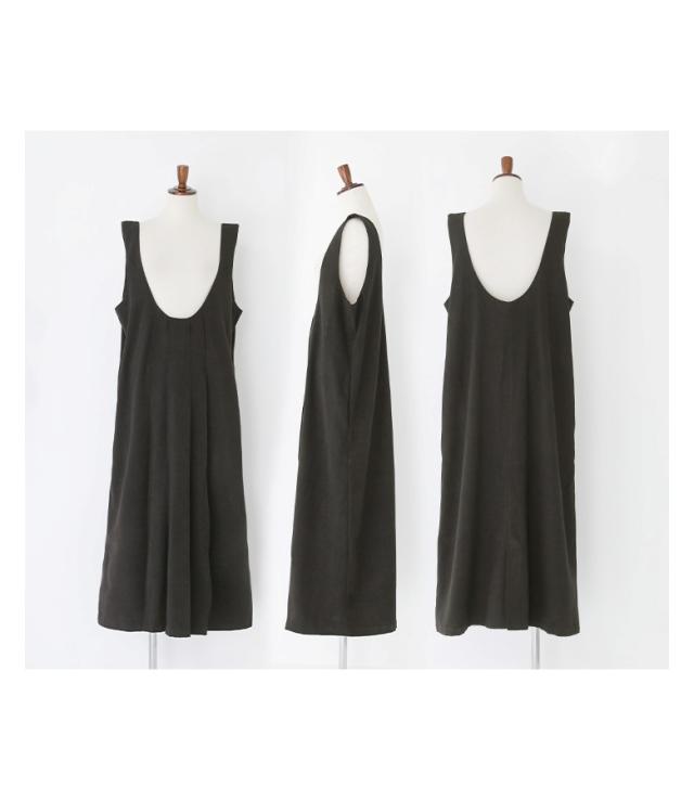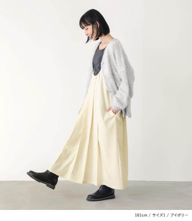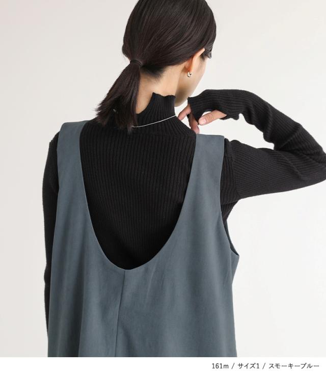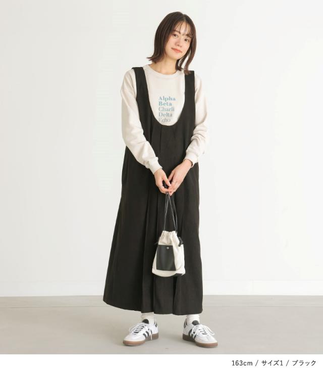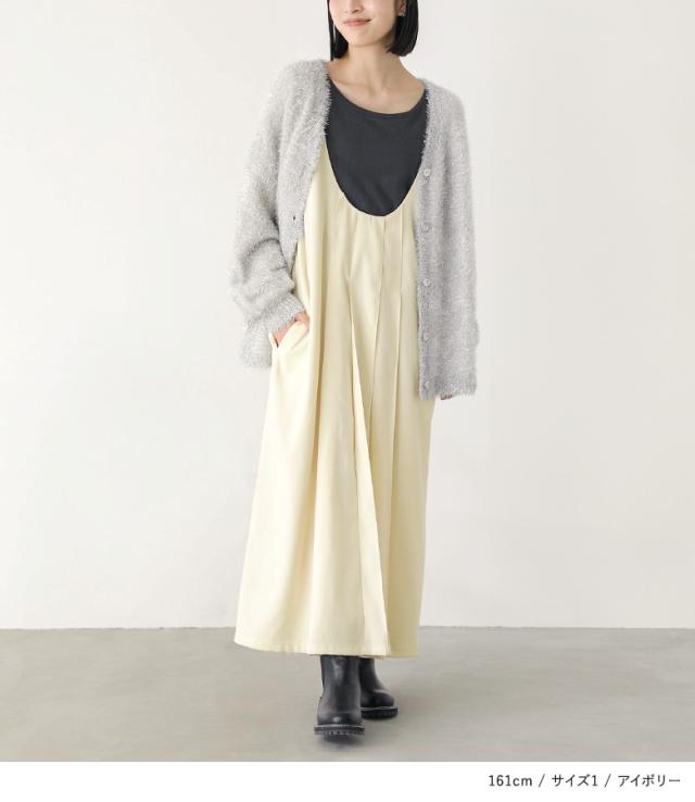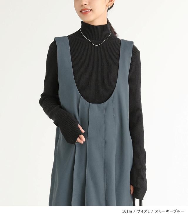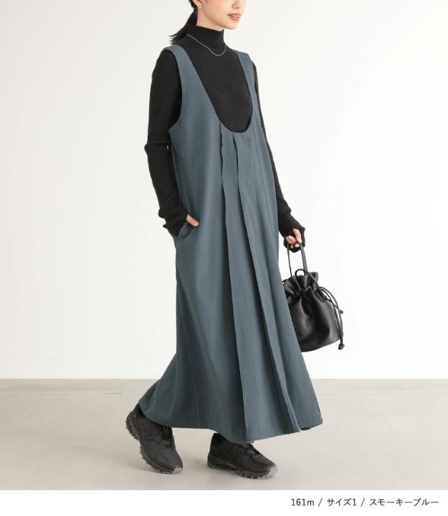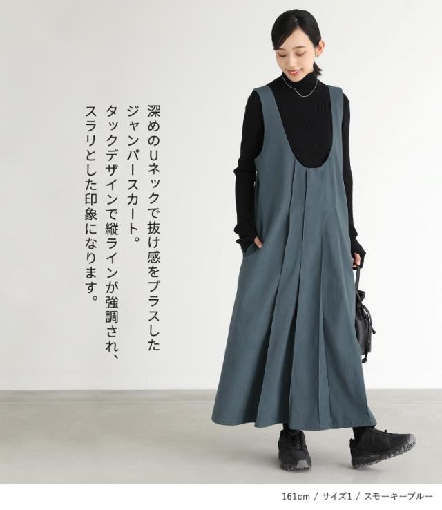 『Uネックタックジャンスカ』【メール便不可】【20】[ジャンパースカート レディース サロペットスカート ワンピース ジャンスカ ロング丈 Uネック 起毛 タック レイヤード 重ね着 Iライン]