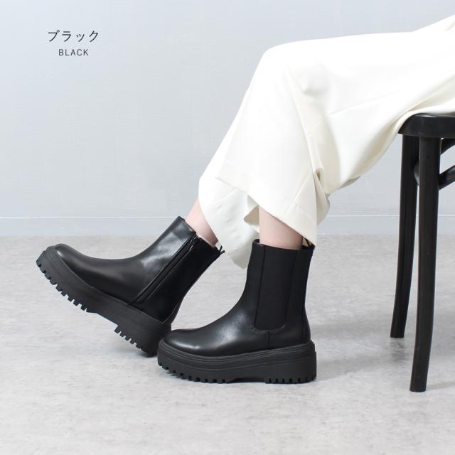 ブーツ レディース 厚底 サイドゴアブーツ サイドジップ 15cm ショートブーツ かわいい 歩きやすい マニッシュ 黒 92905 Parade