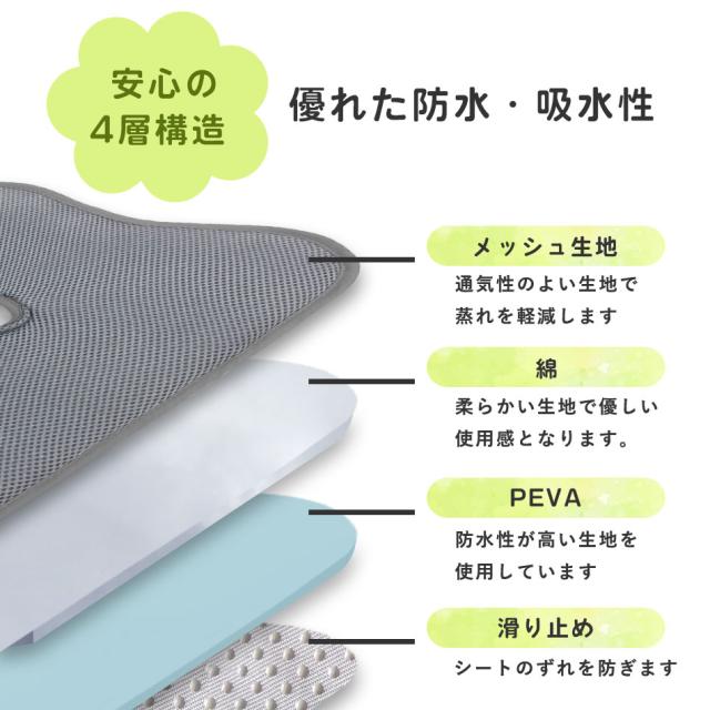 PEVAの生地でしっかり防水仕様。 敷くだけでしっかり漏れ・汚れを防ぎます。