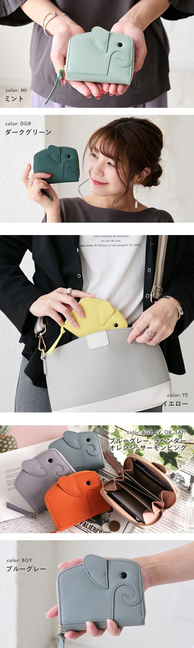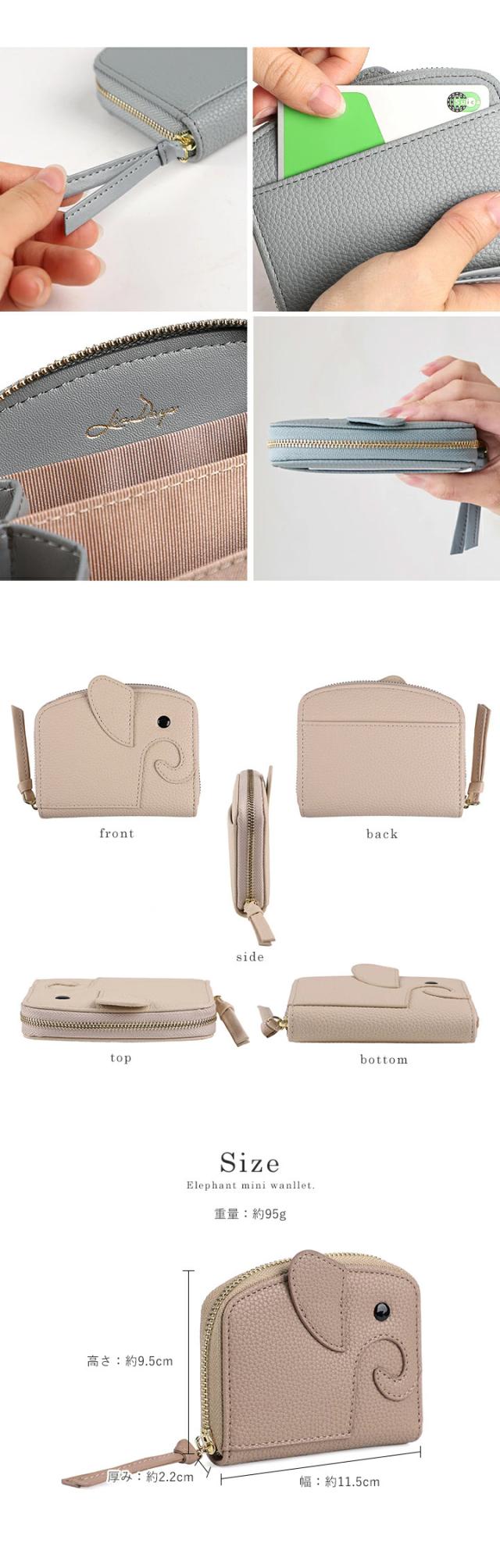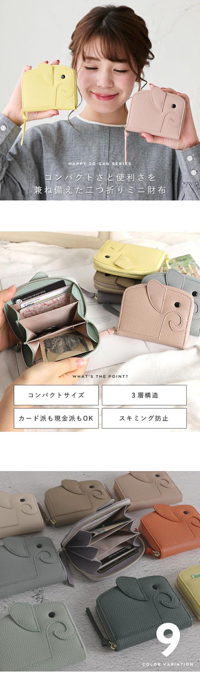 二つ折り 財布 コインケース 軽量 レディース ミニ財布 小銭入れ カード入れ スキミング防止 コンパクト 象 ゾウ かわいい おしゃれ LIZDAYS リズデイズ 大人 二つ折り財布 ミニ ウォレット サイフ 薄型 使いやすい ミニマル 磁気 防止 RFID【lz-67402】