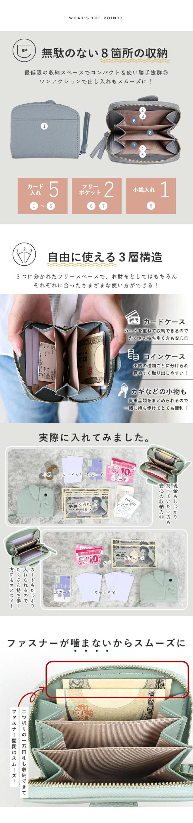 カードが多くて困っている方や、現金もしっかり持っていたい方にも使いやすくマルチな収納を叶えられます。