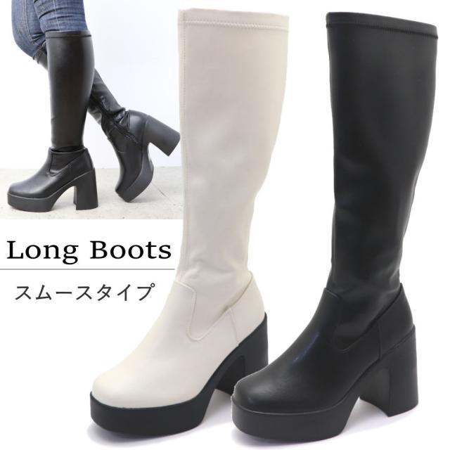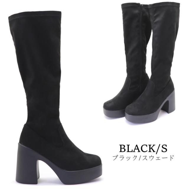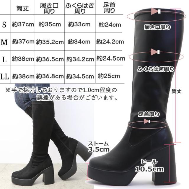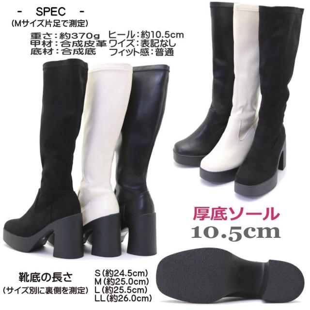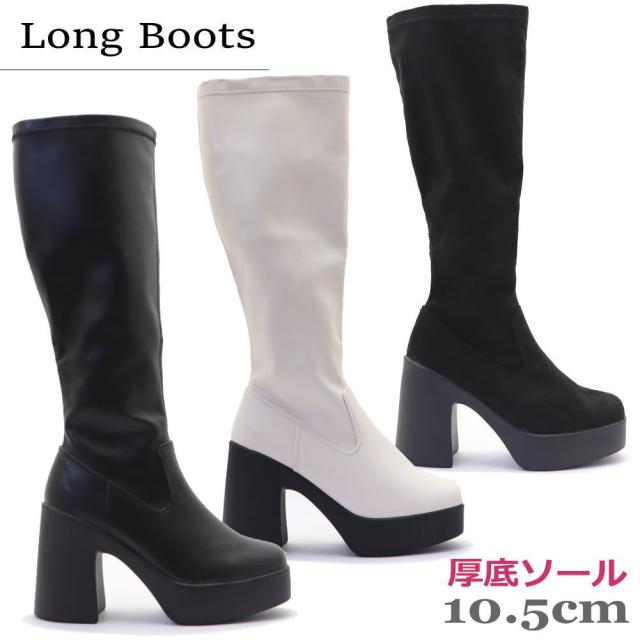 即納 レディース 超厚底 10.5cm チャンキーヒール ハイソール ハイヒール ロングブーツ サイドファスナー No.1848-2