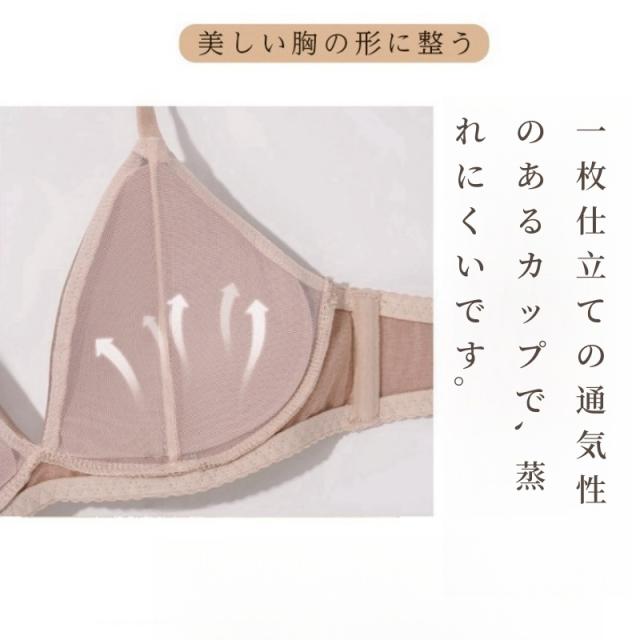 三角カップフロントホック ベロア風ノンワイヤーブラ(美胸 美背 脇高 レース フルレース 総レース 谷間 盛れる ノンワイヤー 補正 ブラジャー ショーツ ブラショーツ ランジェリー インナー レディース セクシー
