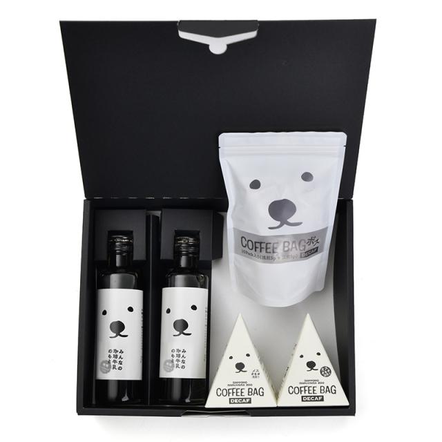 シンプルで愛らしい、シロクマカフェシリーズの5種ギフトセット。安心のデカフェで贈り物におすすめ。