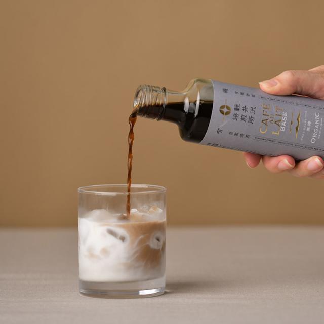 カフェオレベースは牛乳や豆乳で割るだけで、手軽に本格的なカフェオレが作れます。牛乳を多めにすれば、お子さまも喜ぶコーヒー牛乳に。バニラアイスにかけてアフォガード、パンケーキにマスカルポーネチーズを添えてかければティラミス風など、珈琲の香りとコクを濃縮したカフェオレベースはアイディア次第でスイーツにもお使いいただけます。