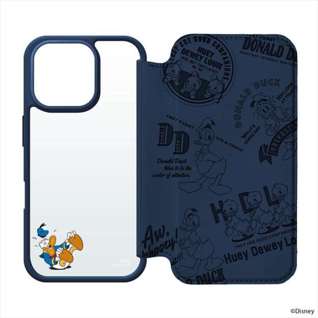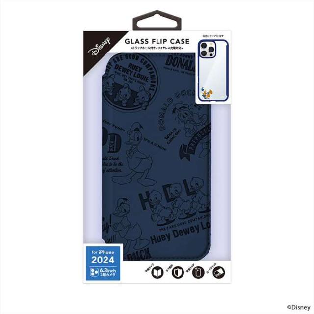 iPhone16Pro iPhone 16 Pro 対応 6.3インチ ガラスフリップケース ドナルドダック 手帳型 ケース カバー iPhoneケース PGA PG-D24BGF02DND