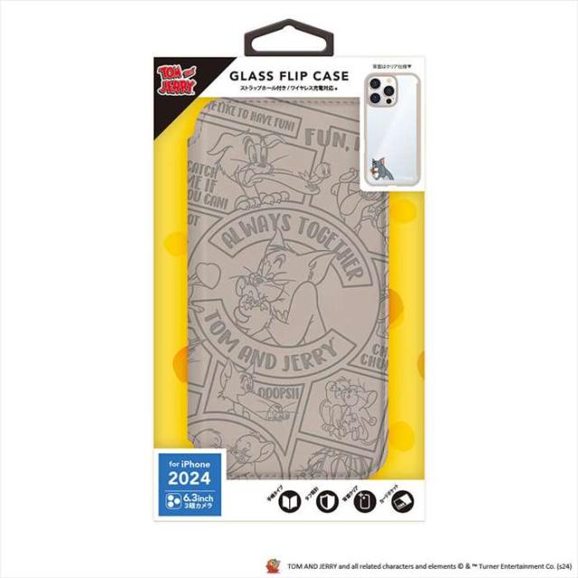 iPhone16Pro iPhone 16 Pro 対応 6.3インチ ガラスフリップケース トムとジェリー 手帳型 ケース カバー iPhoneケース PGA PG-W24BGF01TAJ