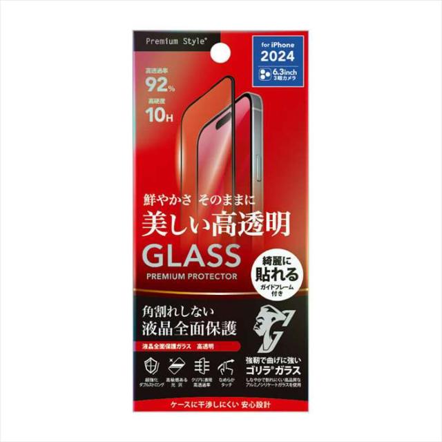 iPhone16Pro iPhone 16 Pro 対応 6.3インチ 液晶全面保護ガラス 角割れ防止PETフレーム 2倍強化 ゴリラガラス 高透明 液晶保護 ガラス PGA PG-24BGLF04GCL