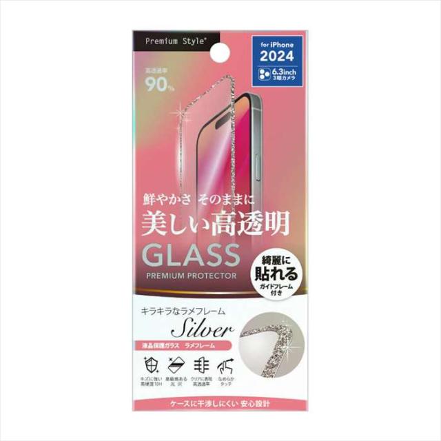 iPhone16Pro iPhone 16 Pro 対応 6.3インチ 液晶全面保護ガラス ラメフレーム シルバー 高透明 液晶保護 ガラス PGA PG-24BGLL02SV