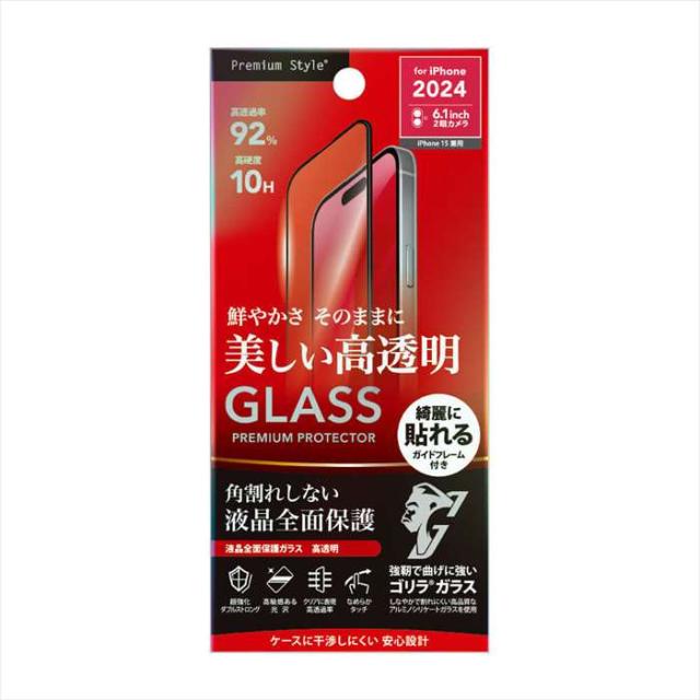 iPhone16 iPhone 16 対応 6.1インチ 液晶全面保護ガラス 角割れ防止PETフレーム 2倍強化 ゴリラガラス 高透明 液晶保護 ガラス PGA PG-24AGLF04GCL