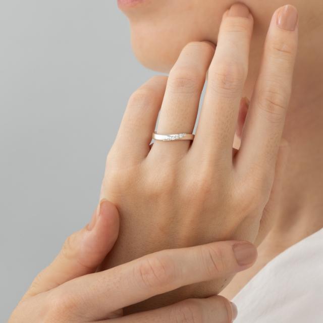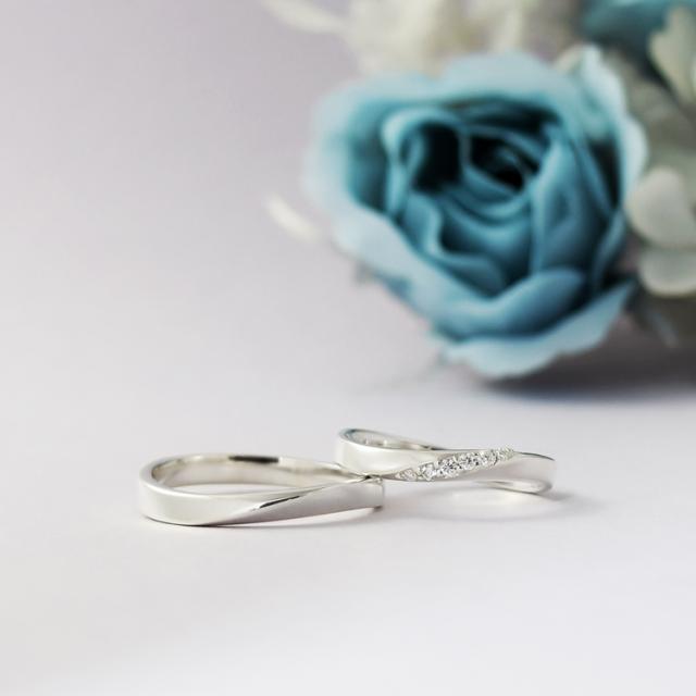 手元を優しい雰囲気に見せてくれるウェーブラインのアニバーサリーペアリング。