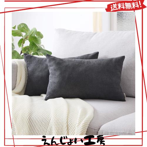 Topfinel クッションカバー 長方形 リネンっぽい 30×50cm 北欧 おしゃれ 綿麻 無地 ソファ背当て 装飾枕カバー 濃いグレー 2枚(全10色