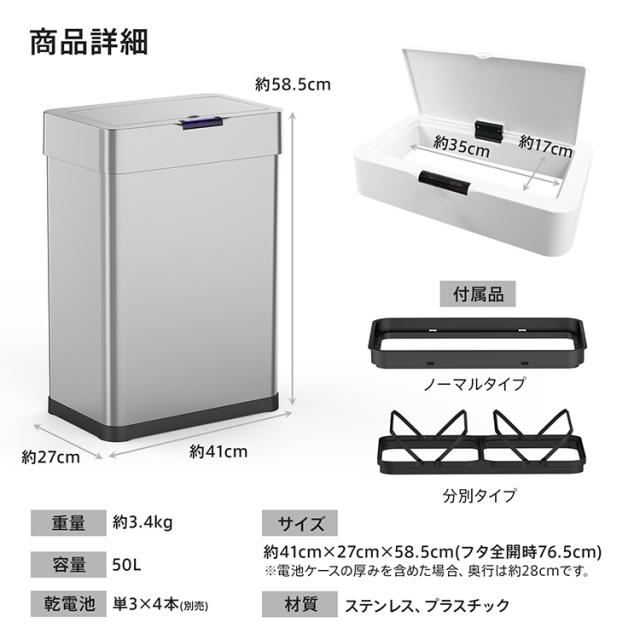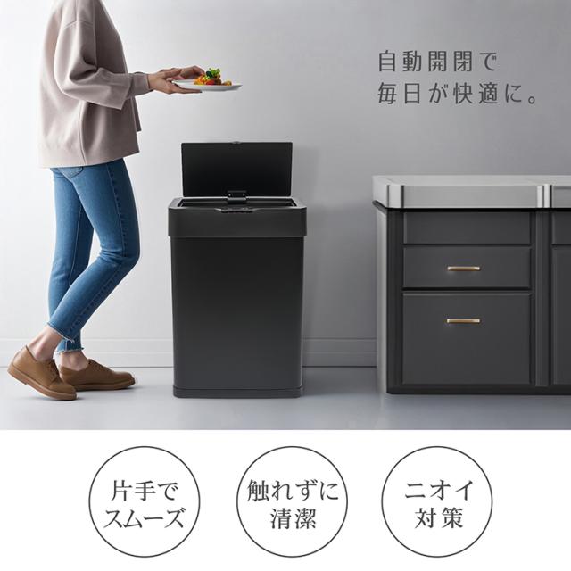 新生活 ゴミ箱 センサー付き フタ付き 自動開閉 タッチ操作 電池 50L 45L袋 大型 大容量 ダストボックス 分別 ニオイ対策 ステンレス スリム キッチン リビング トイレ オフィス 一人暮らし おしゃれ sg246