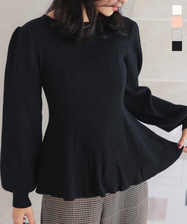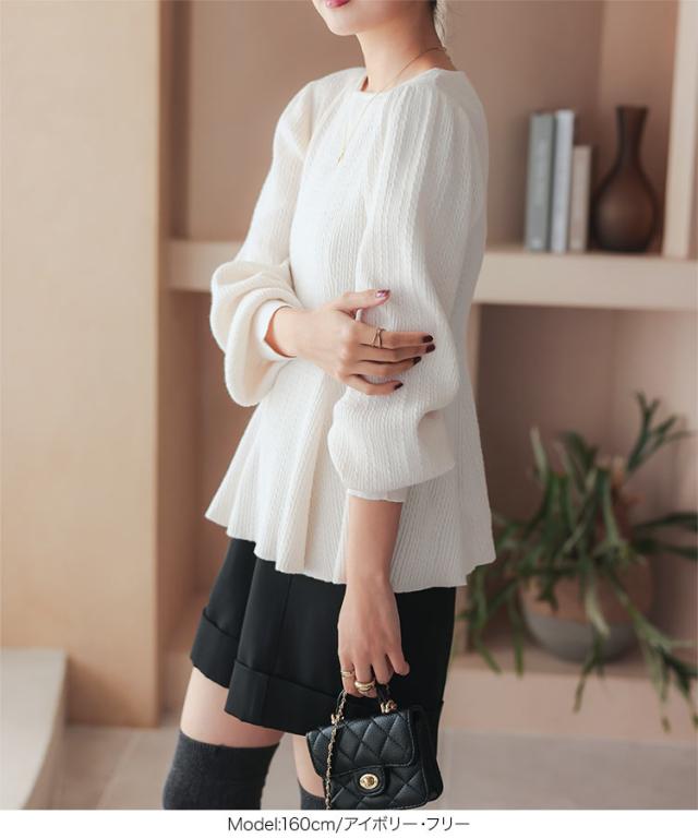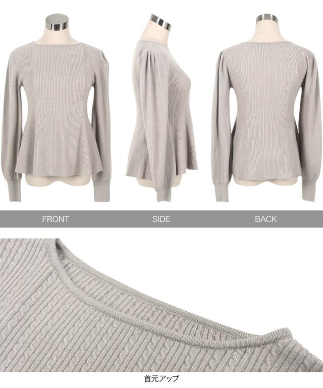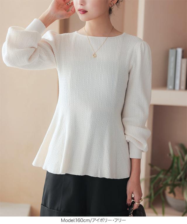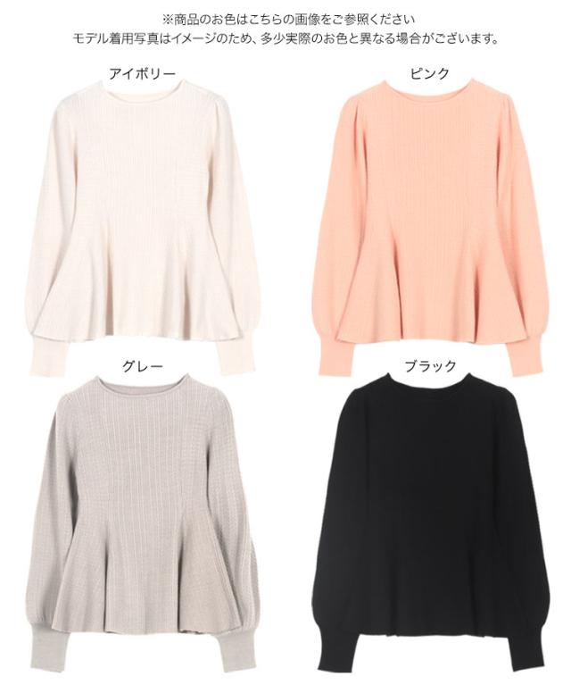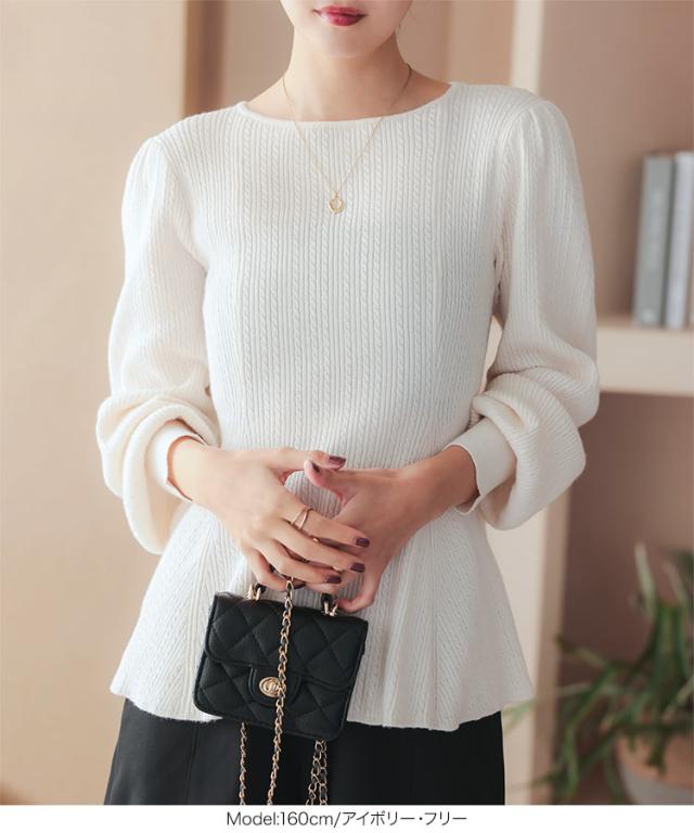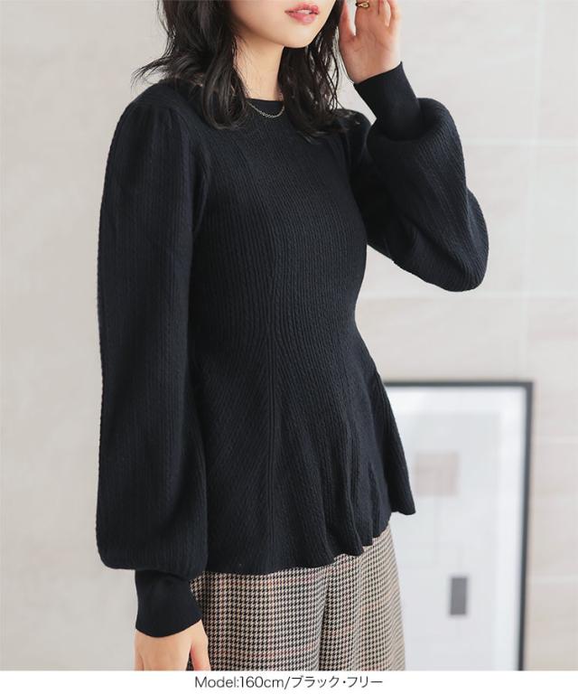 ぽわん袖ペプラムリブニットトップス C7185 入荷済 レディース 20代 30代 40代 ぽわん袖ペプラムリブニットトップス