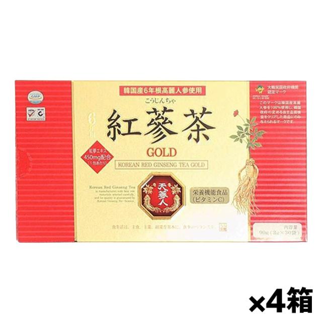 高麗貿易ジャパン 紅参茶 ゴールド 3g x30包 x4箱(こうじんりょく こうじんちゃ 高麗人参 韓国産6年根紅参エキス450mg配合)[栄養機能食