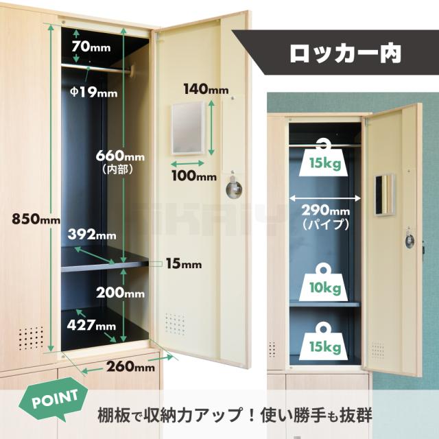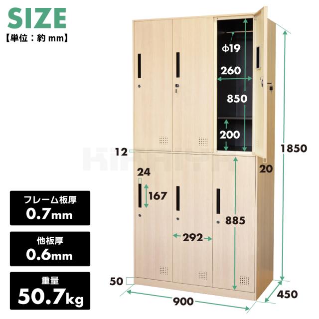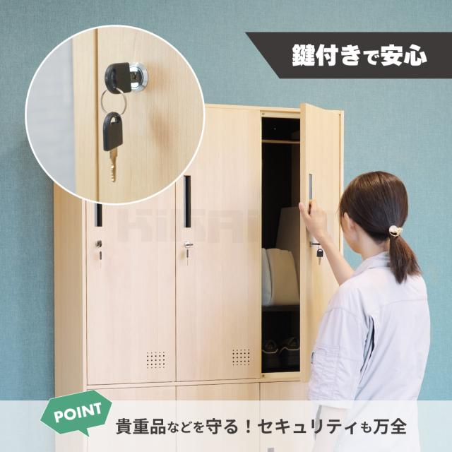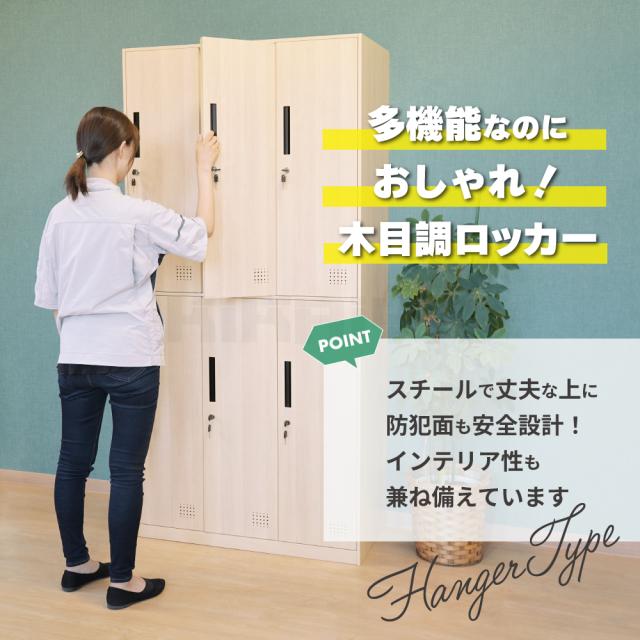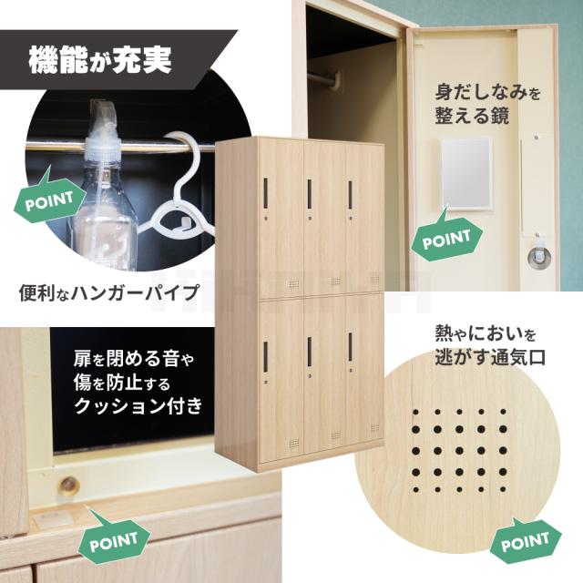 ロッカー 鍵付き スチールロッカー 6人用 3列2段 木目調 ハンガーパイプ 棚 鏡 収納 オフィス 事務所 会社 店舗 病院 学校 更衣室 業務用 KIKAIYA