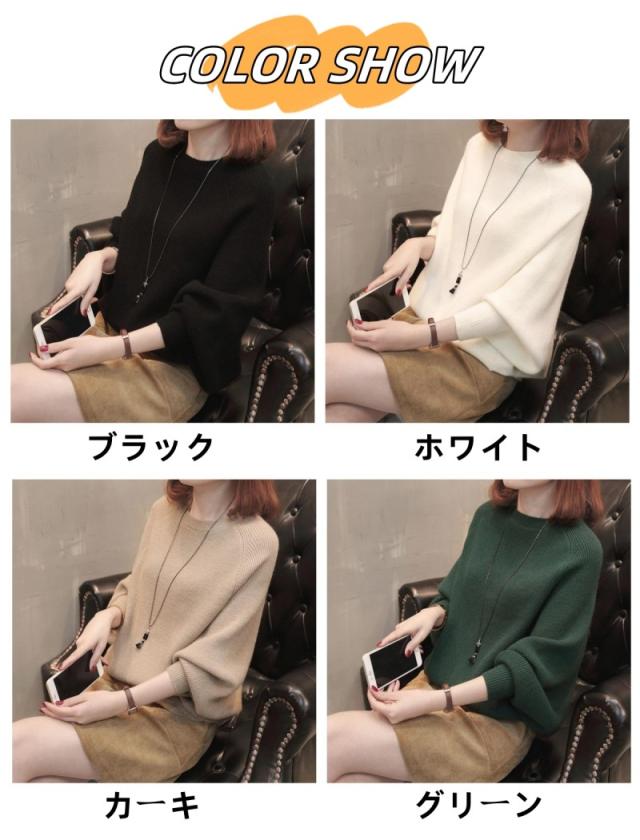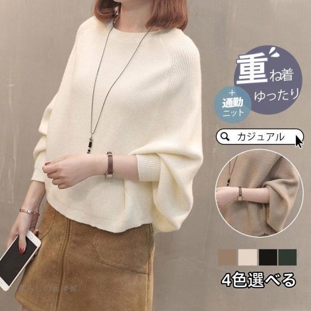 ニット セーター レディース 長袖 トップス ニットソー プルオーバー カジュアル ゆったり 体型カバー シンプル インナー 秋 冬