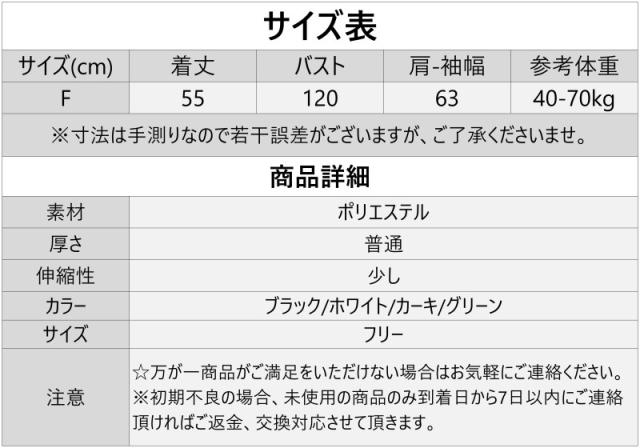 フリー着丈55 バスト120 肩袖幅63 参考体重40-70kg