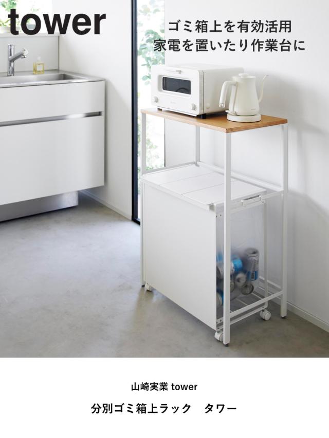 山崎実業 tower 分別ゴミ箱上ラック タワー ( 4903208016667 タワーシリーズ ゴミ箱上ラック ごみ箱上ラック ラック キッチンラック レンジラック キッチン収納ラック 収納ラック ゴミ箱 上 ごみ箱上 天板 )