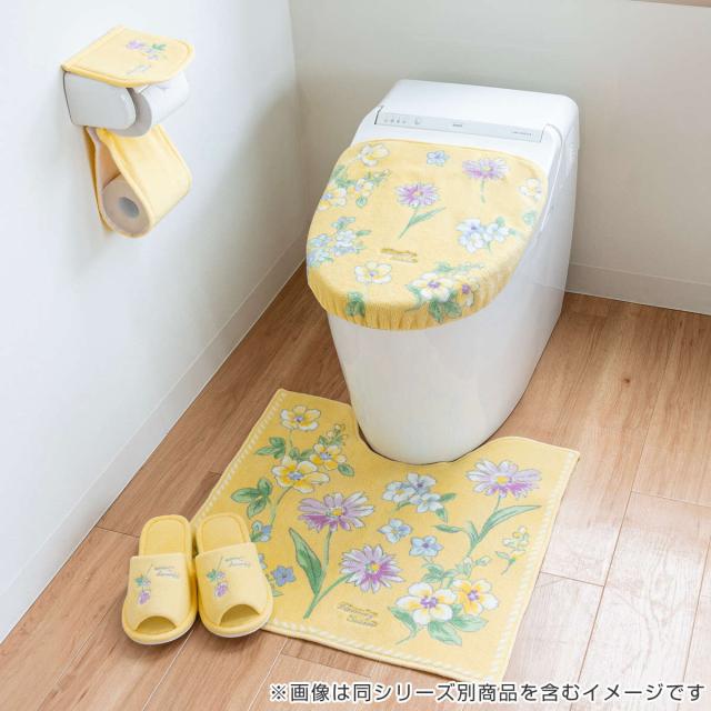 植物とお花をモチーフにしたボタニカル柄の「ブルーミングシーズン」シリーズ。ブルーとイエローの爽やかな清潔感のあるカラーで、甘くなりすぎないナチュラルなデザインです。便座カバー、フタカバー、トイレマット、ペーパーホルダーカバー、スリッパで揃えるとトイレ空間をパッと明るく彩ってくれます。