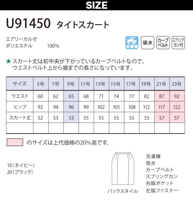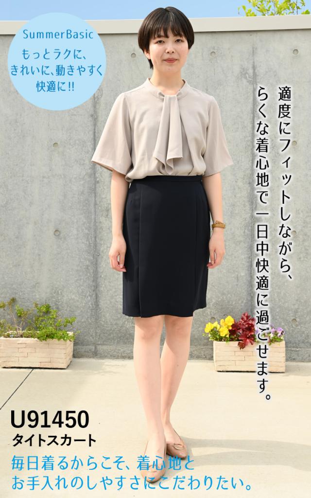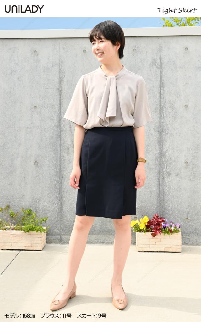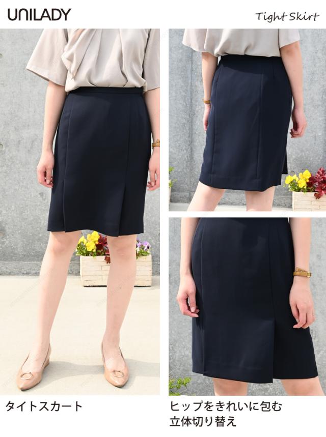 Unilady タイトスカート(53cm丈) U91450 5号〜19号 スプリングカン カーブベルト 右脇ポケット 美尻効果 洗濯機 おもてなし 制服 春夏 事務服 ユニレディ ヤギコーポレーション