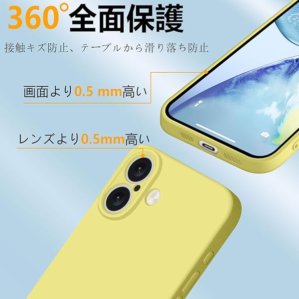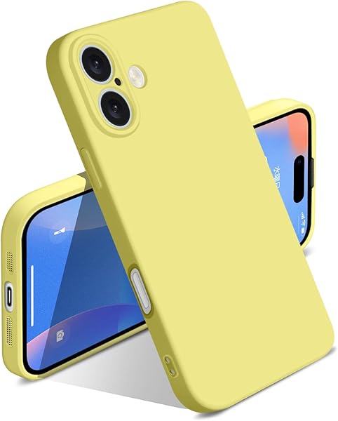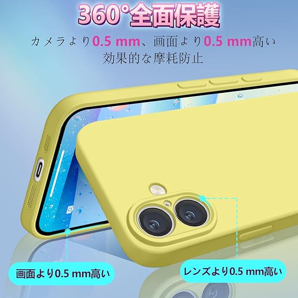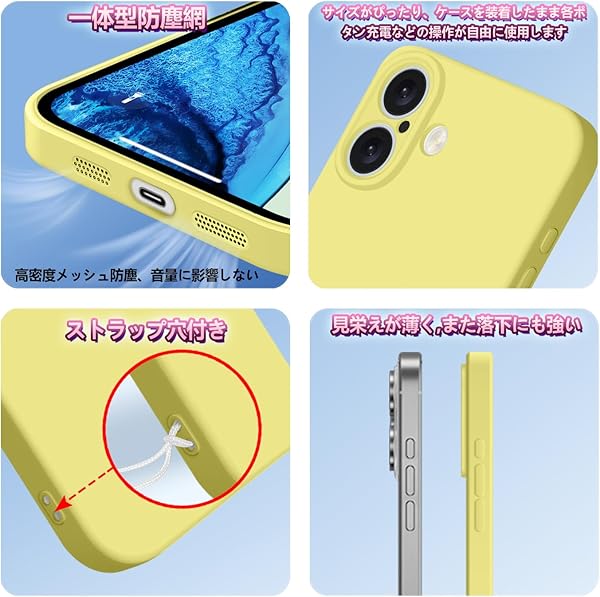 iPhone 16 ケース シリコン 耐衝撃 アイフォン16 カバー 薄型 軽量 ソリッドカラー シンプル ストラップホール付き マット感 人気 指紋防止 レンズ保護 ソフト ワイヤレス充電対応 イエロー