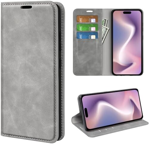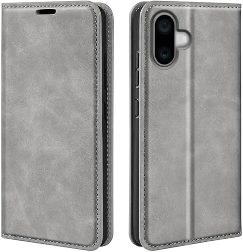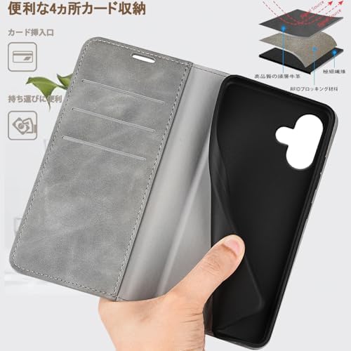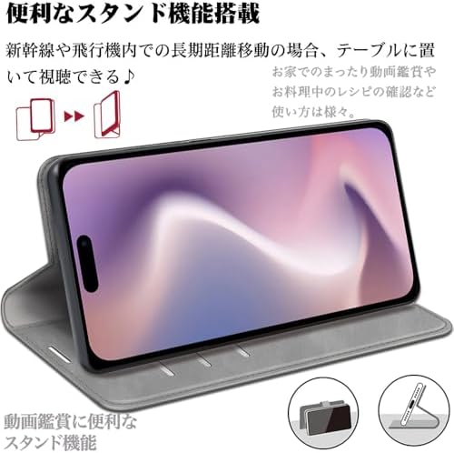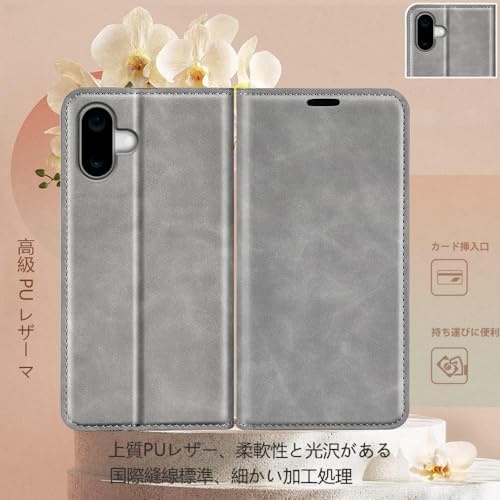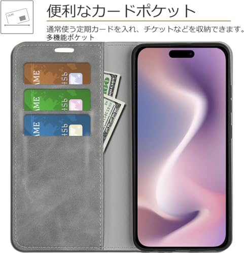 iPhone 16 ケース 手帳型 アイフォン16 カバー 財布型 内蔵マグネット開閉式 ベルトなし 落ち着いた色 カードポケット 折り畳み式 横置き スタンド機能 便利 耐衝撃 人気 上質 カード収納 グレー