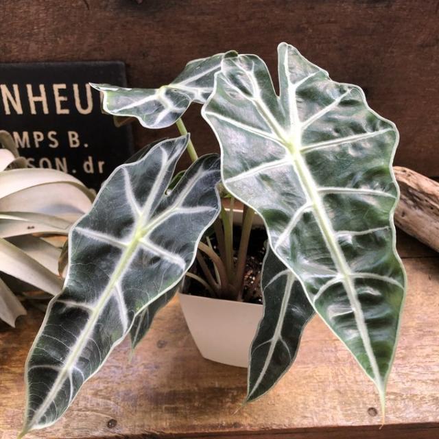 葉っぱと葉脈が非常に美しい観葉植物の『アロカシア アマゾニカ』です。