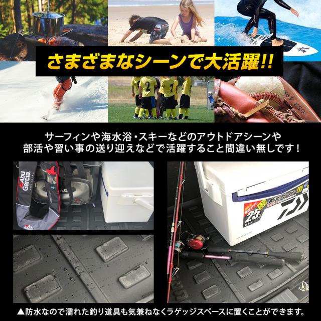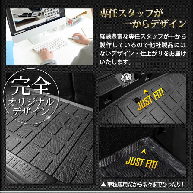 車種専用完全オリジナルデザインの3Dラゲッジマットが新発売 車種専用なので隅々までぴったりフィット! 経験豊富な専任のスタッフが一から製作しているので、他社製品にはないデザインと仕上がりをお届けします。 本品は置くだけだけの簡単設置で汚れや傷からトランク内を保護します。 3Dの立体デザインで縁部分は数センチの立ち上がりがあるので水や汚れをしっかりキャッチ! 完全防水なのでお手入れも簡単! 水や汚れは軽いものならウエスなどで拭くだけでOK! 全面的に汚れた場合は丸洗いも可能なので衛生的です。 新素材の熱可塑性エラストマー(TPE)を使用。 弾力があり、曲げたりすることも可能なので、お車からの取り外しも容易です。 |