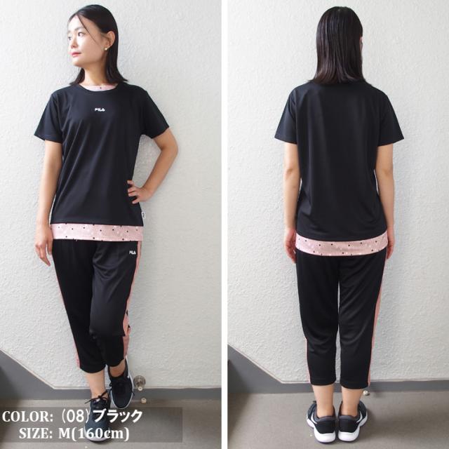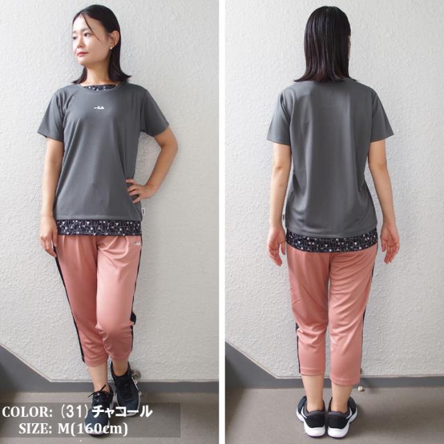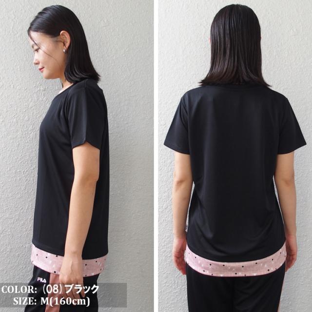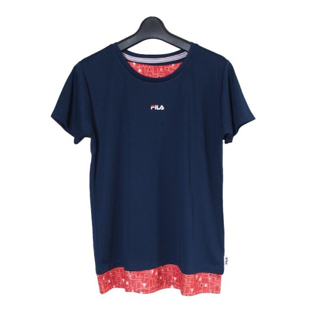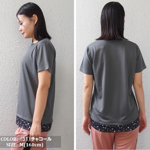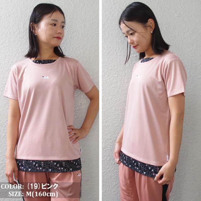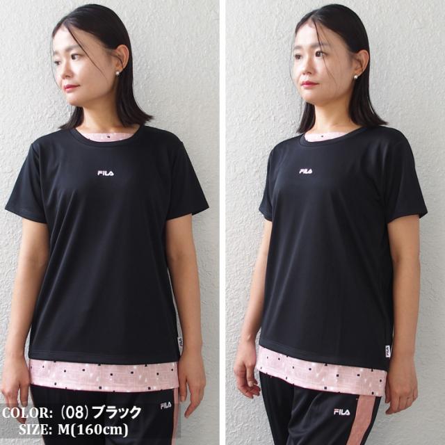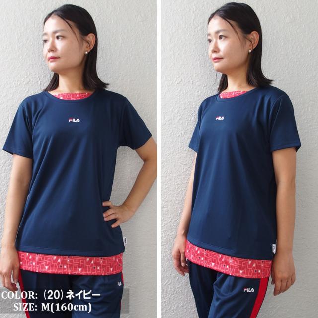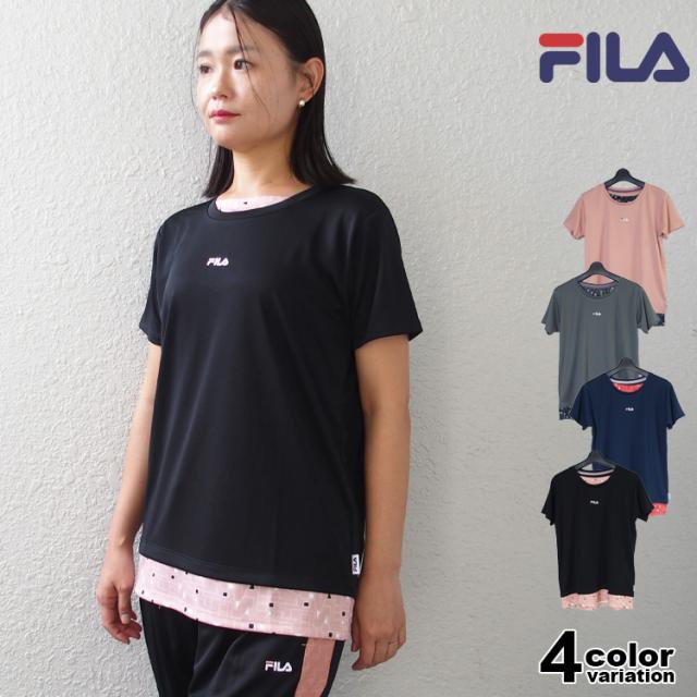 FILA Tシャツ フィラ レディース フェイクレイヤード メッシュ フィットネスウェア スポーツウェア トレーニングシャツ ランニング ジョギング ジム フィットネス UV対策 ドライ フィット (4色) [FL7051] 【メール便対応】