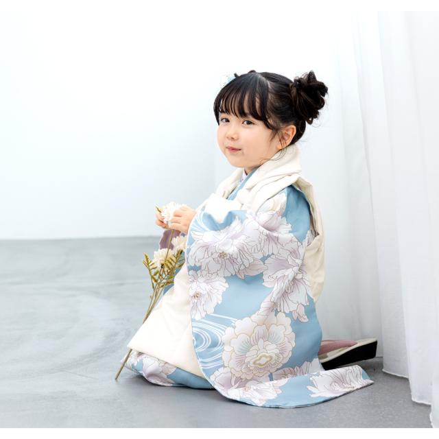 七五三 着物 3歳 レトロ 被布 販売 女の子 三歳 着物セット 被布コート 襦袢 草履 セット floro かわいい おしゃれ 青 花柄 和装 女児 子供 送料無料